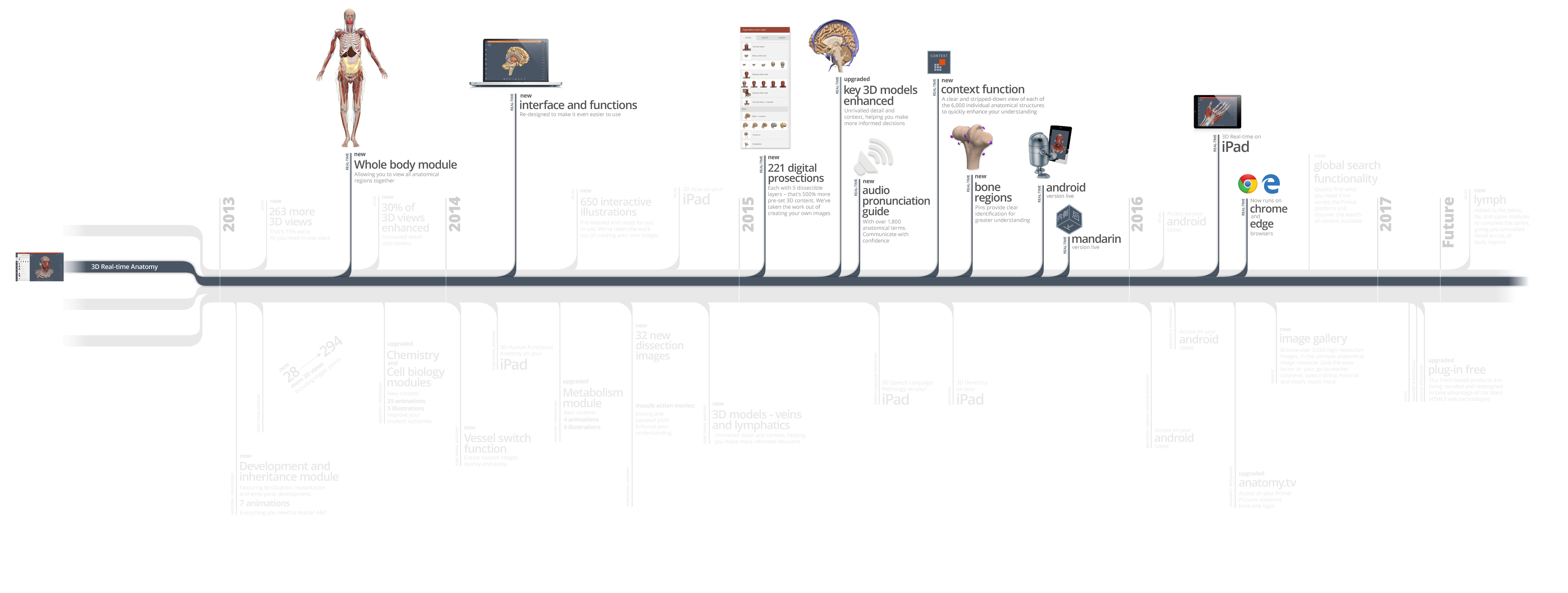 Primal Pictures is constantly evolving to deliver a best-in-class service based on your needs. Take a look at what has been done over the past two years to enhance faculty workflow, improve student outcomes and increase patient satisfaction levels…
